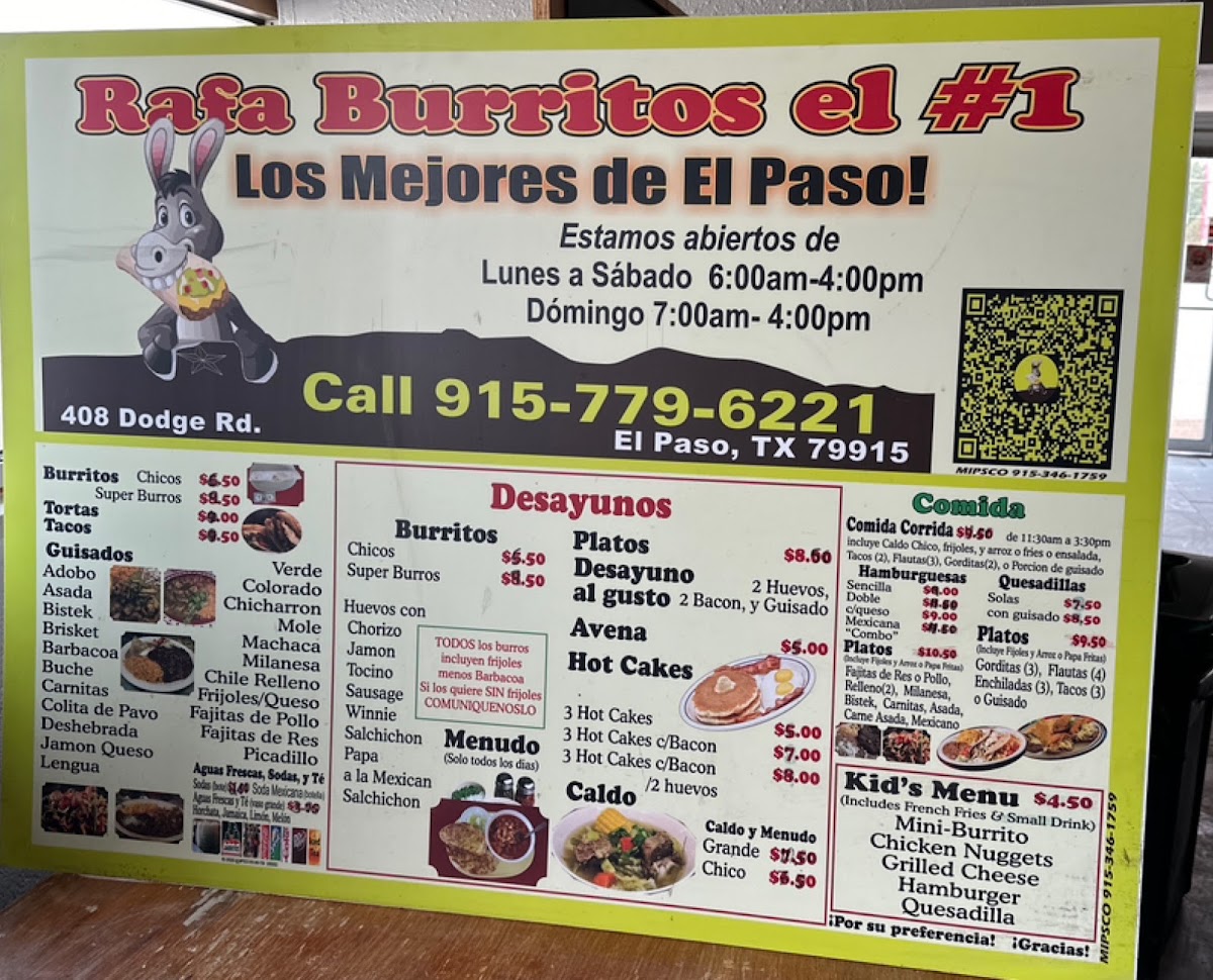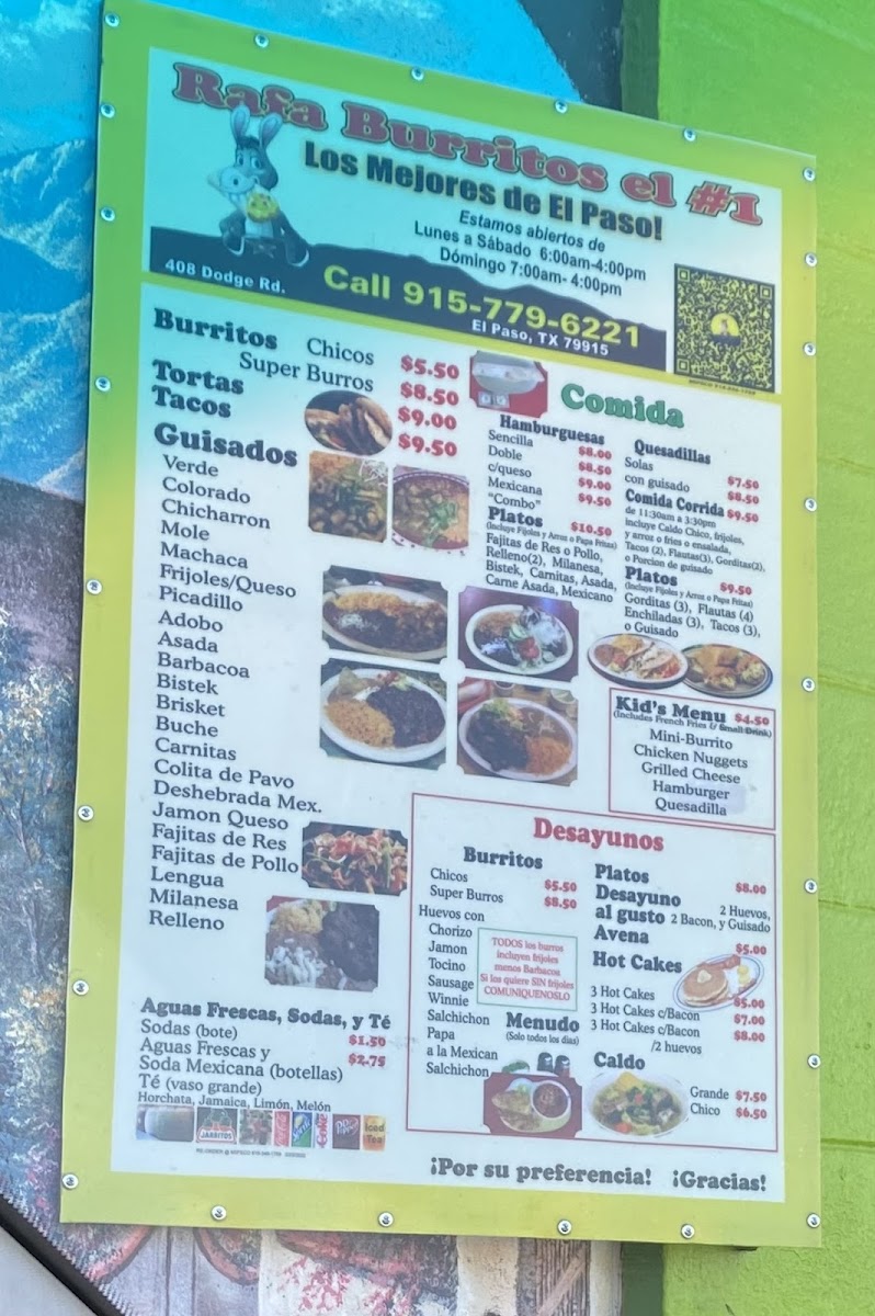 Rafa Burritos Menu