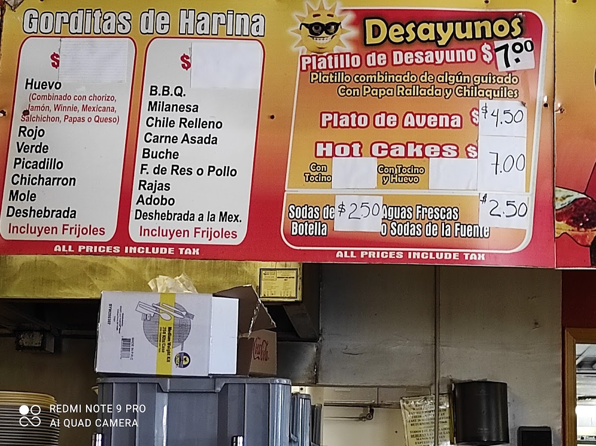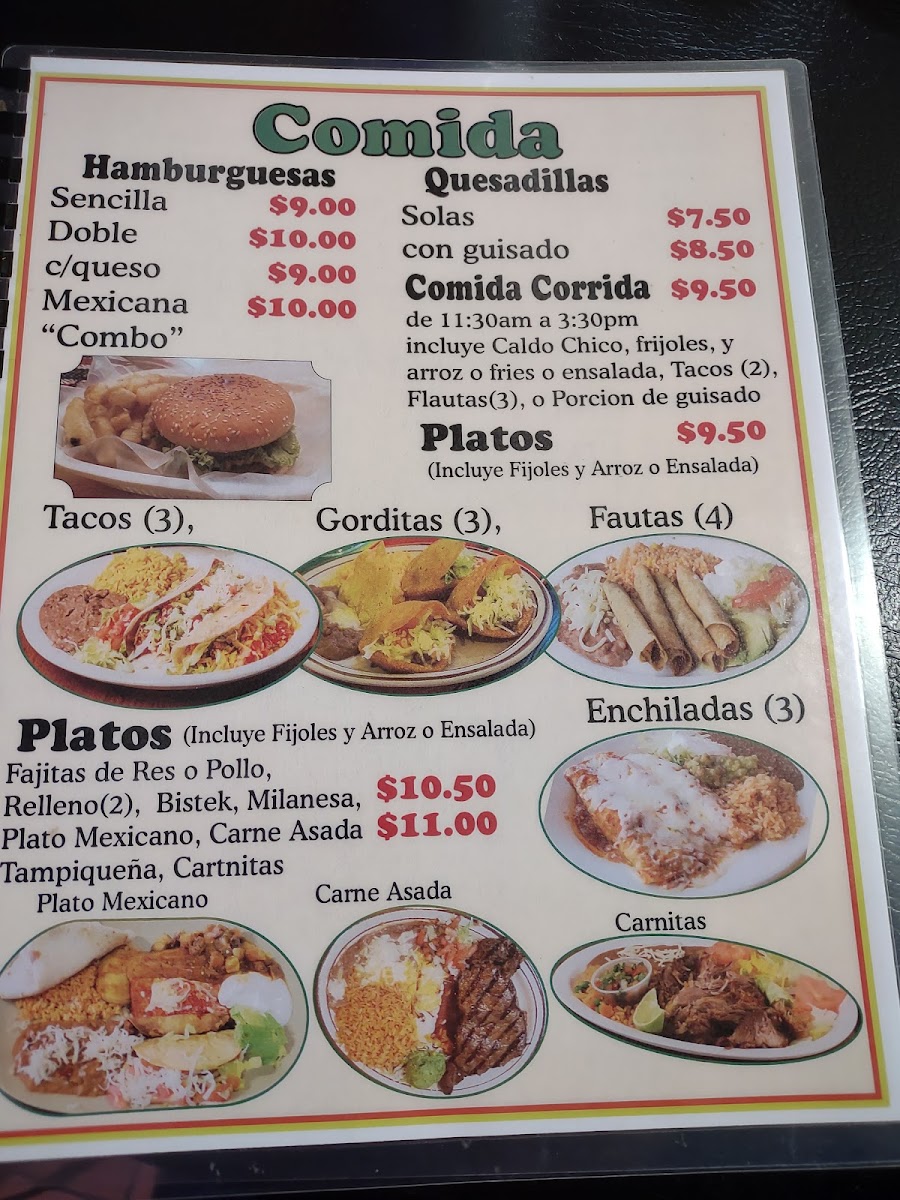 - Plates and Specials: such as Torta De Milanesa, Enchiladas Tampiquena Especial, and Adobo Breakfast Plate.