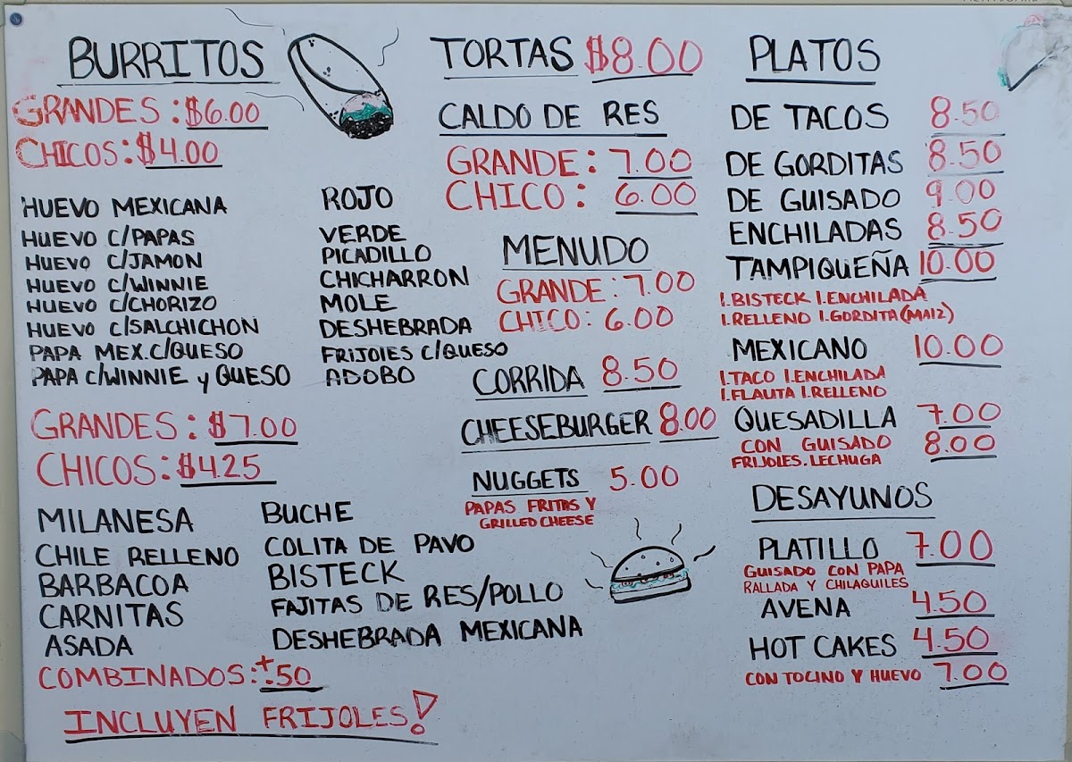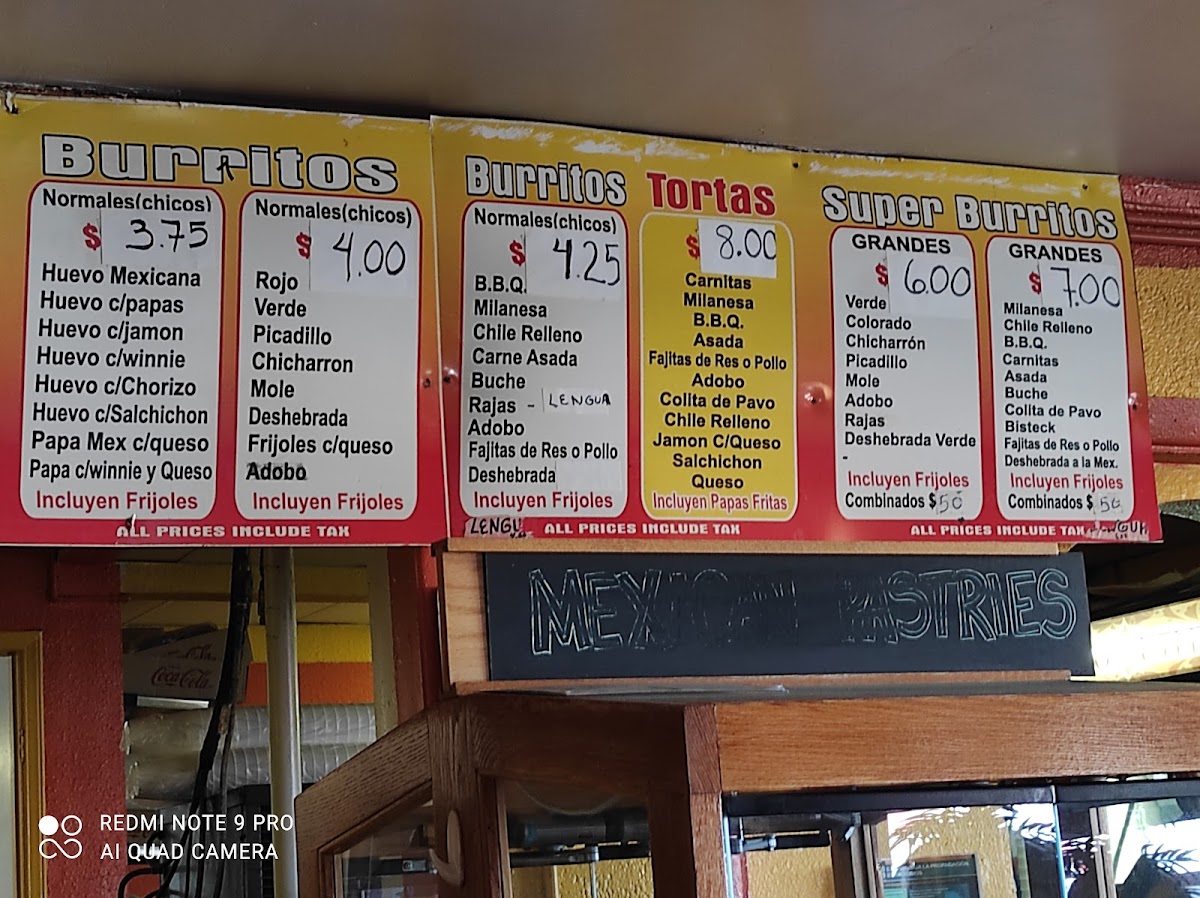 - Burritos: including various sizes and fillings like picadillo and carne asada.